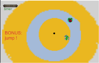 New version of Frogger game; you must cross the river and the road: push "c" and "d" (in Windows version) or the two "green buttons" (with red arrow, in the android version) to move.